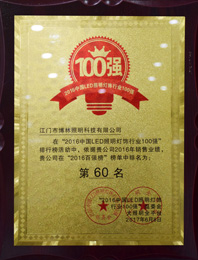 入选中国LED照明灯饰行业百强榜