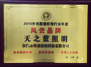 天之蓝照明品牌成为世界照明灯饰行业年度风云品牌