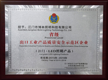 荣获省级工业产品质量安全示范区企业