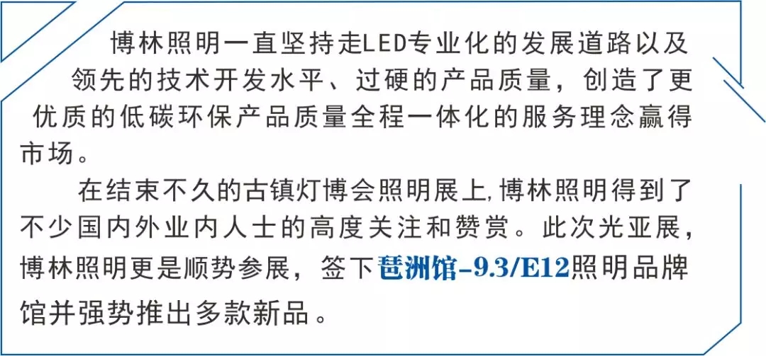 博林照明深信,在同质化日益严重的当下,没有革新能力的企业没有未来,产品方面,每款产品和技术都在不断的更新提高,我们初心不改,匠心依旧,致力于产品的性能研发。无论是光源流通类、商业照明类、家居照明类、户外工程类、电工电料类,未来,博林照明将践行“一切以用户为中心”服务理念,为用户打造专业的LED照明解决方案,为用户创造更大价值。